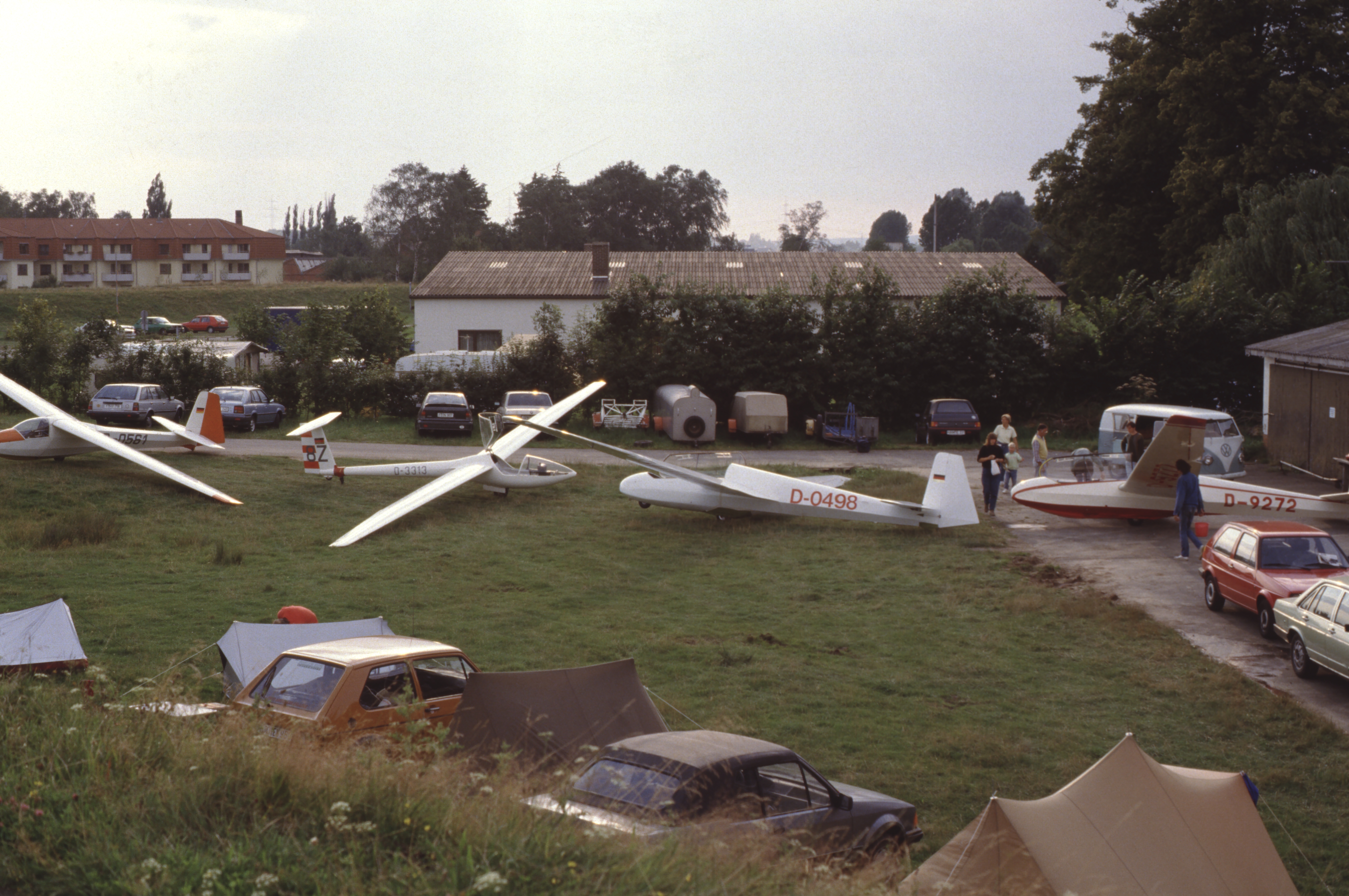 Während des Studiums habe ich dann in der zweiten Hälfte der 1980er Jahre endlich die Gelegenheit wahrgenommen, bei der Akaflieg Frankfurt eine Flugausbildung zu beginnen. Das Foto zeigt auf unserem Flugfeld Ziegenhain unser damaliges, fast durchgehend holzbasiertes Flugmaterial.