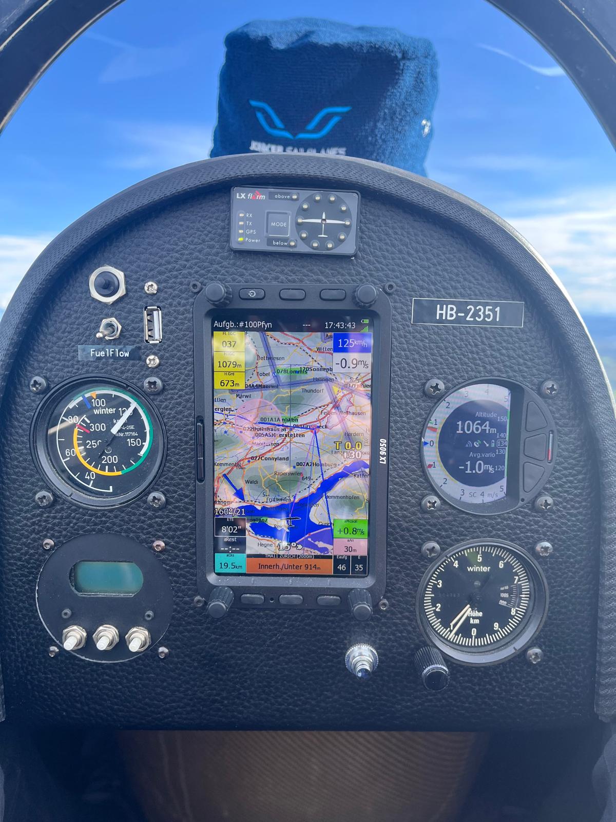 Zum Fliegen in der Blauthermik konnte ich nicht viel beitragen. Guido war aber froh, wenn ich andere Segelflugzeuge sichtete, welche in Aufwinden kreisten. Zudem versuchte ich ab und zu, per Handy andere Flieger zu tracken, um zu schauen, wo es Aufwinde hatte.