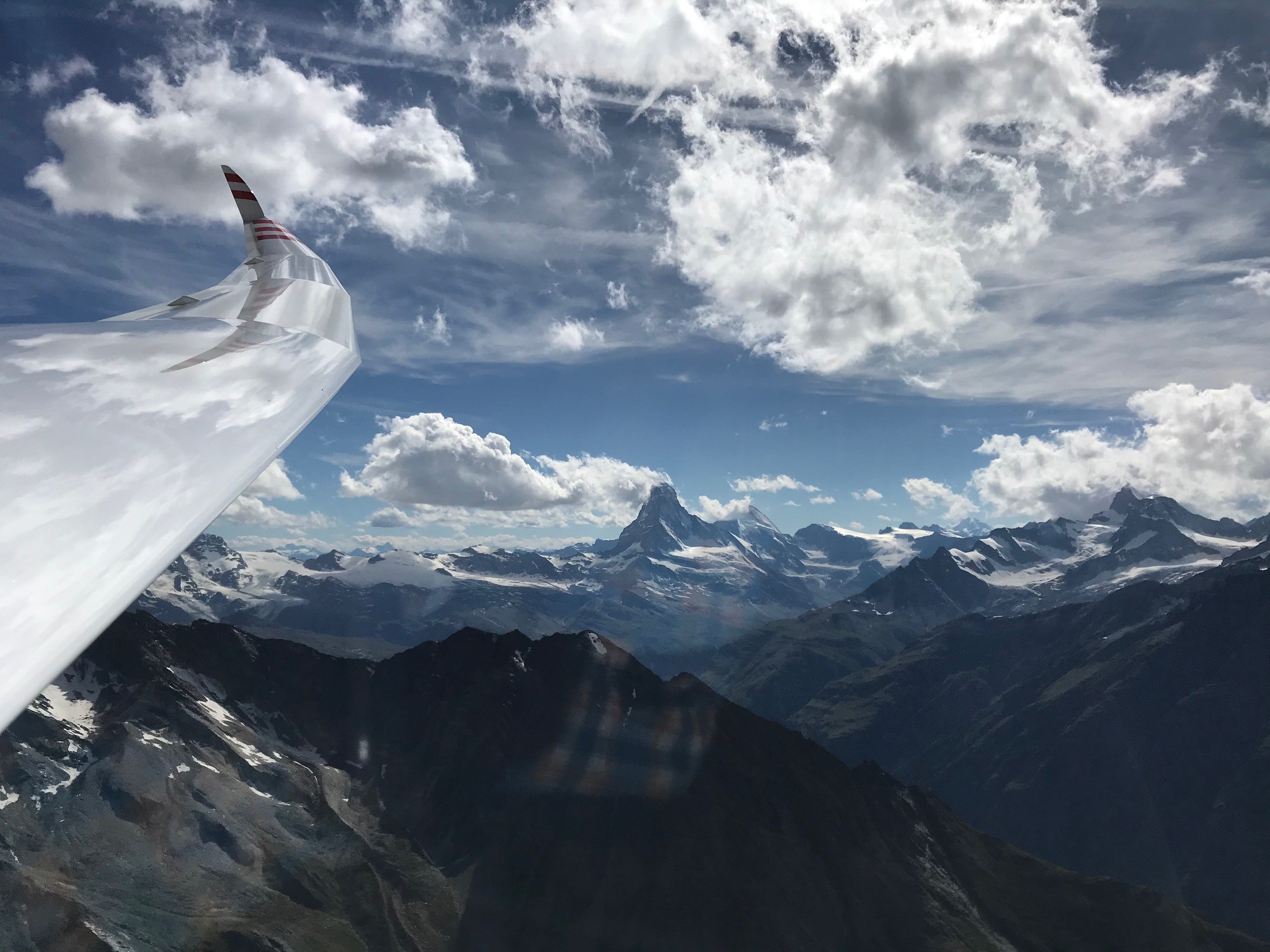 Ein Einweisungsflug wurde mir dringend empfohlen. Pepe Schäuble nahm mich dann mit dem Arcus auf einen 4.5 stündigen Erkundungsflug: Grimsel, Furka, Aletschgletscher bis ins Mattertal mit Blick aufs Matterhorn.